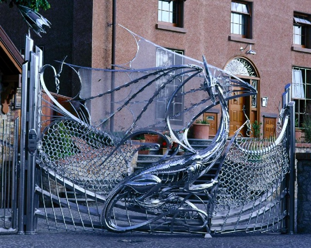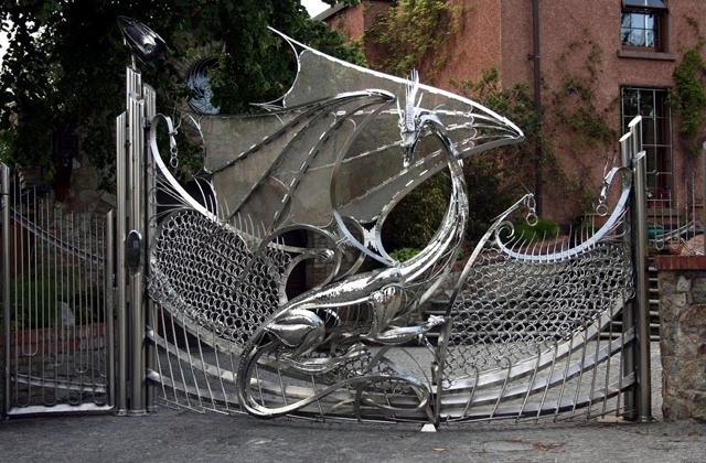 Готические кованые ворота выигрышно смотрятся на фоне современных художественных направлений: изделия, обрамленные устремленными вверх стрелами и декорированные трилистниками, привлекают внимание как искусствоведов, так и любителей прекрасного.